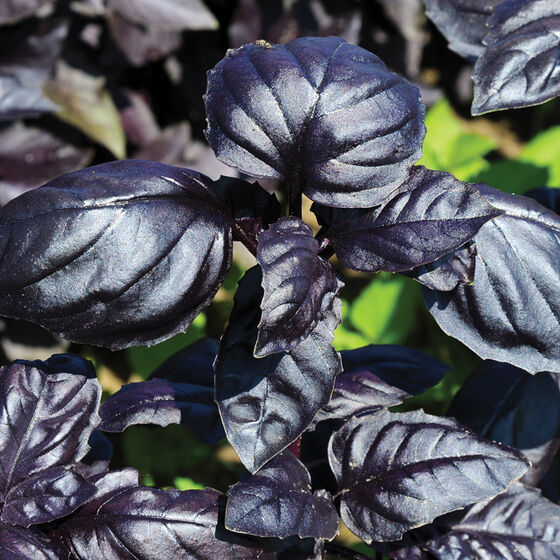 Amethyst Improved Basil is a stunning Genovese-type variety that stands out with its deep, almost black purple leaves. This annual herb matures in 90 days, offering a unique twist on traditional basil. Its rich color and robust flavor make it a versatile choice for both culinary enthusiasts and ornamental gardeners. Developed as an improvement over other purple basil varieties, Amethyst boasts enhanced bolt resistance and hardiness.